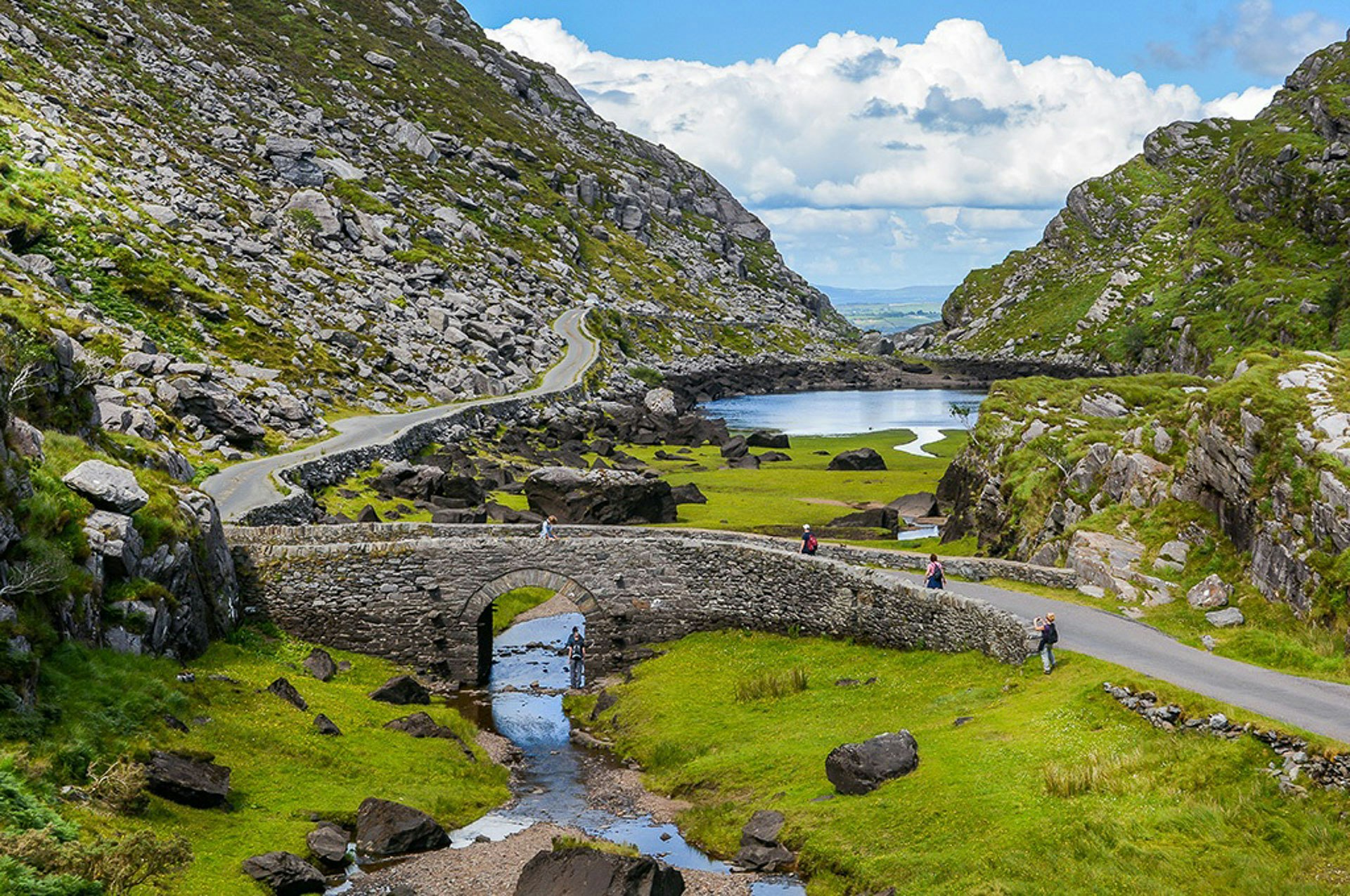No, this is not a real ring, although its presence is gold for the local economy, as a day spent driving the Ring of Kerry is the touchstone against which all other beauty spots in Ireland are measured. The Iveragh Peninsula is a magical place full of myths and legends. This landscape of sandstone hills, wooded valleys and pristine lakes has inspired poets and authors to pen many a lament. A photographer’s dream, the region is dotted with quaint towns and villages. Its lands have been carved into a series of mountain passes that whisper their story as we follow the trail of the Ring of Kerry.