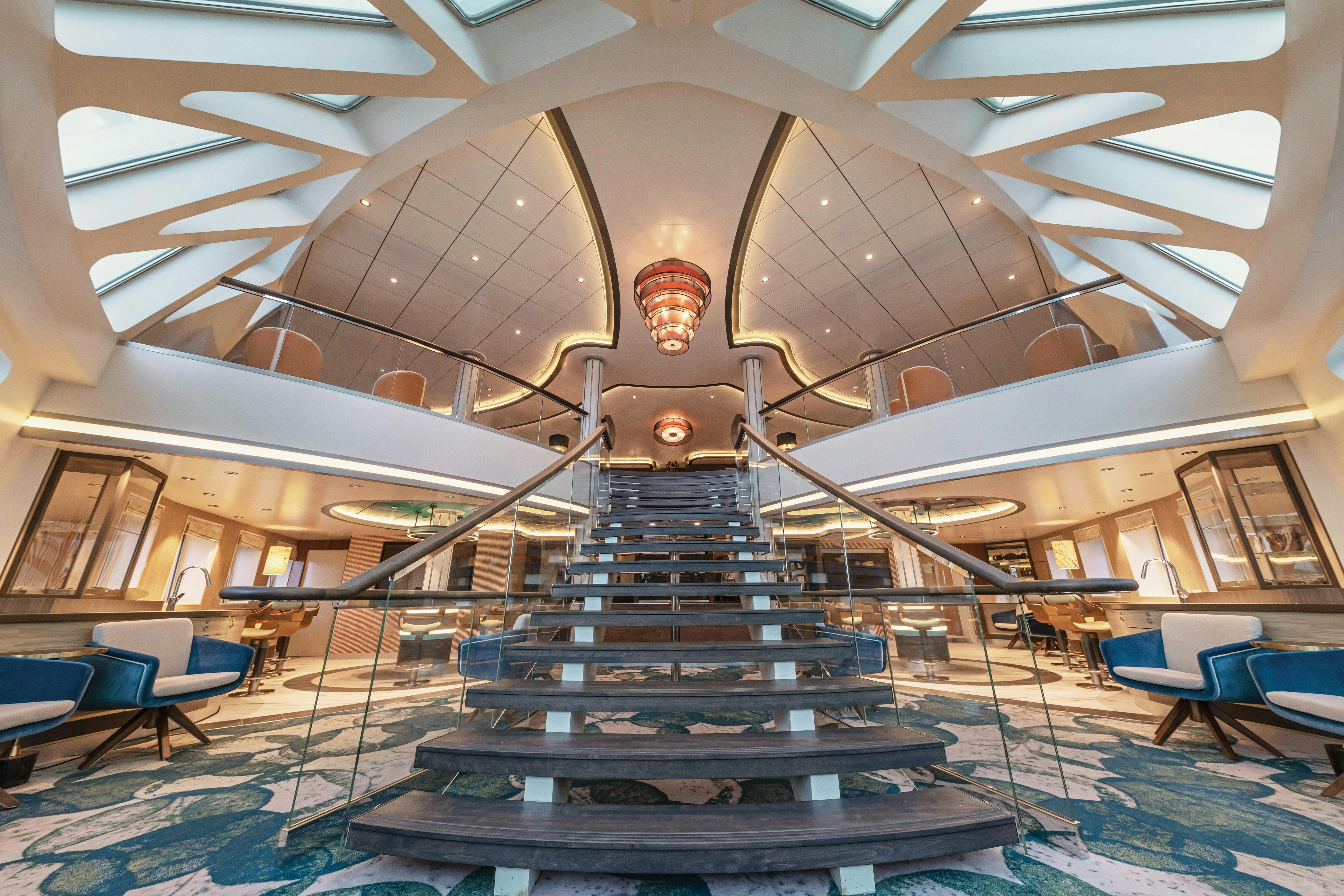 The bars and lounges on board are refined yet inviting places to gather, with floor-to-ceiling windows, offering stunning views, and of course friendly bartenders to shoot the breeze with.